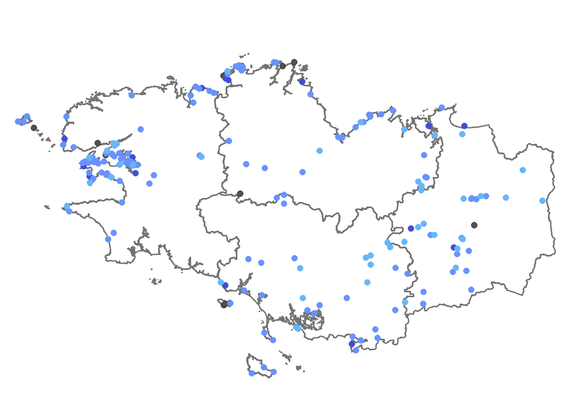 Couche polygonale des débits ADSL dans la région Bretagne